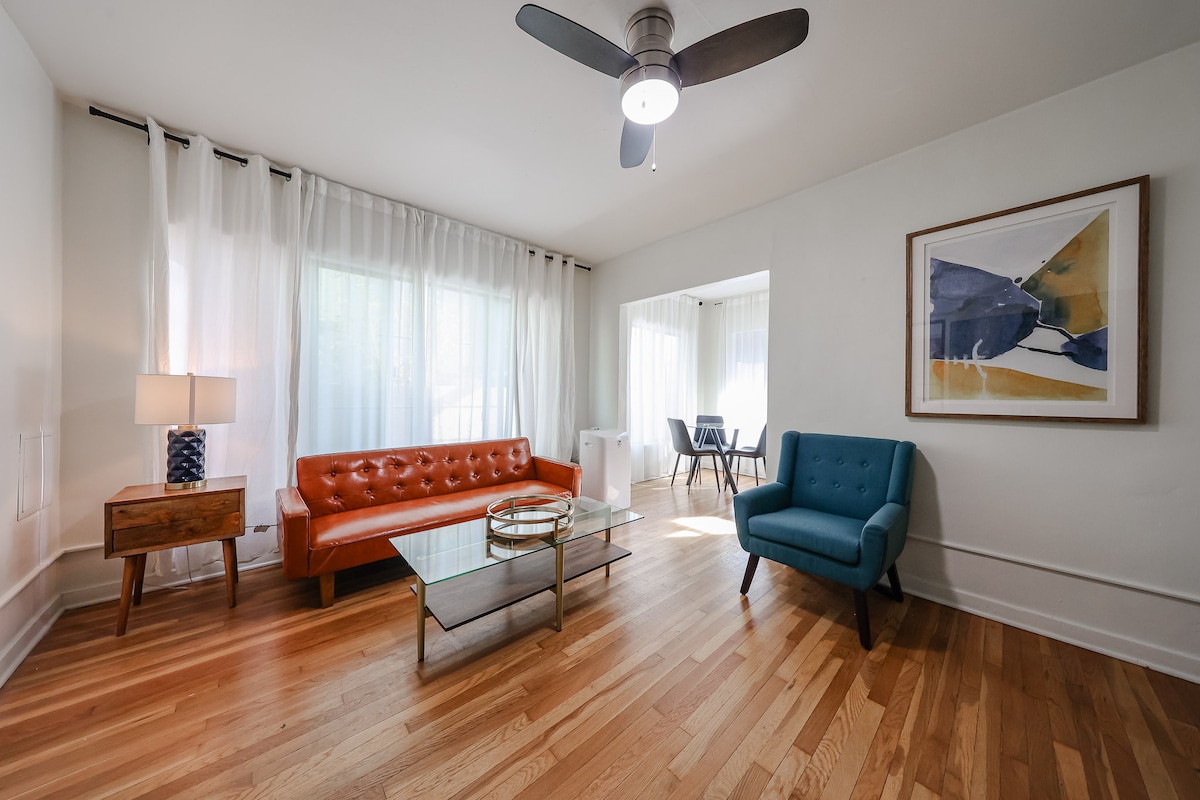 Stay in the heart of Roosevelt Row at this stylish one-bedroom on 1st Street, steps from Phoenix’s best bars, breweries, coffee shops, and nightlife. Located in a historic downtown building (not a cookie-cutter high-rise), this space features original hardwood floors, oversized windows, and curated midcentury modern design. The perfect walkable home base for exploring by day and going out at night.