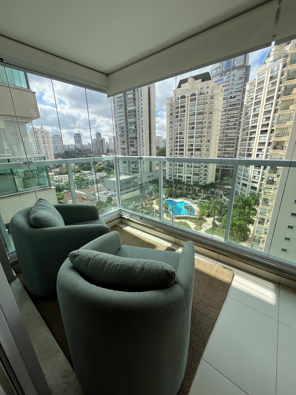 Apartment located next to EZ Towers, Huawei Office, and near the offices of top global companies (GAC, Hisense, Meta, BMW, BYD, Porsche, Service IT, Samsung, and others). Within walking distance of the US Consulate and three major malls: Morumbi Shopping, Parque Cidade, and Market Place. Comfortably accommodates up to 2 guests with a queen bed in the bedroom. Air conditioning in all rooms. Beautiful view to Avenue Chucri Zaidan.