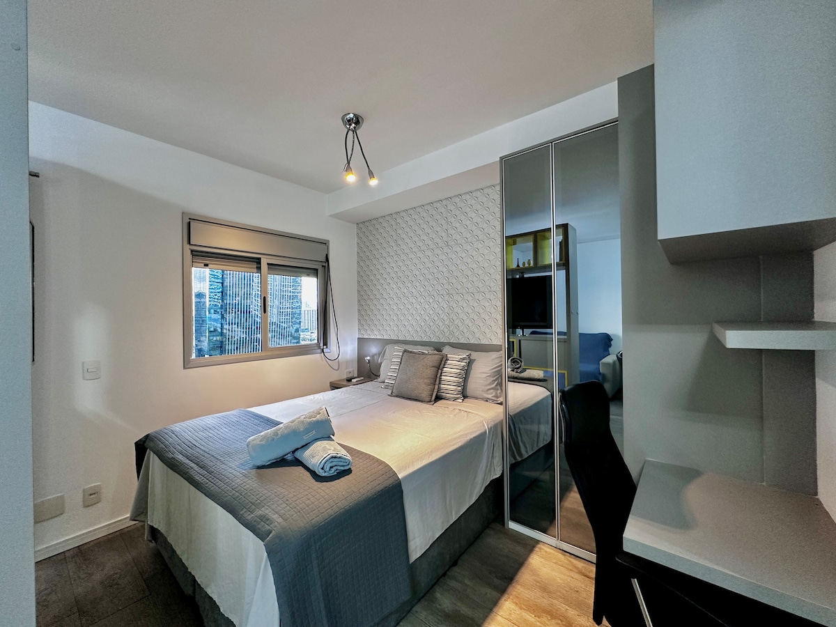 Apartment located next to EZ Towers, Huawei Office, and near the offices of top global companies (GAC, Hisense, Meta, BMW, BYD, Porsche, Service IT, Samsung, and others). Within walking distance of the US Consulate and three major malls: Morumbi Shopping, Parque Cidade, and Market Place. Comfortably accommodates up to 2 guests with a queen bed in the bedroom. Air conditioning in all rooms. Beautiful view to Avenue Chucri Zaidan.