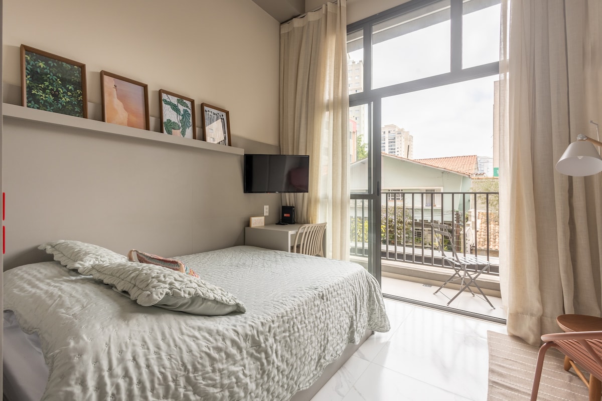 Estúdio espaçoso com muito design, arquitetura e a melhor vista de São Paulo. Loft completo! Com cama queen, closet, ar condicionado silencioso, cozinha completa, home office, WI-FI, TV 55” e uma belíssima banheira de imersão, de onde pode apreciar o seu drink preferido e curtir uma vista apaixonante. São Paulo toda estará há poucos minutos de você. Acesse o metrô andando apenas 200m. Reserve com tranquilidade! Proporcionaremos uma excelente hospedagem e uma ótima experiência!