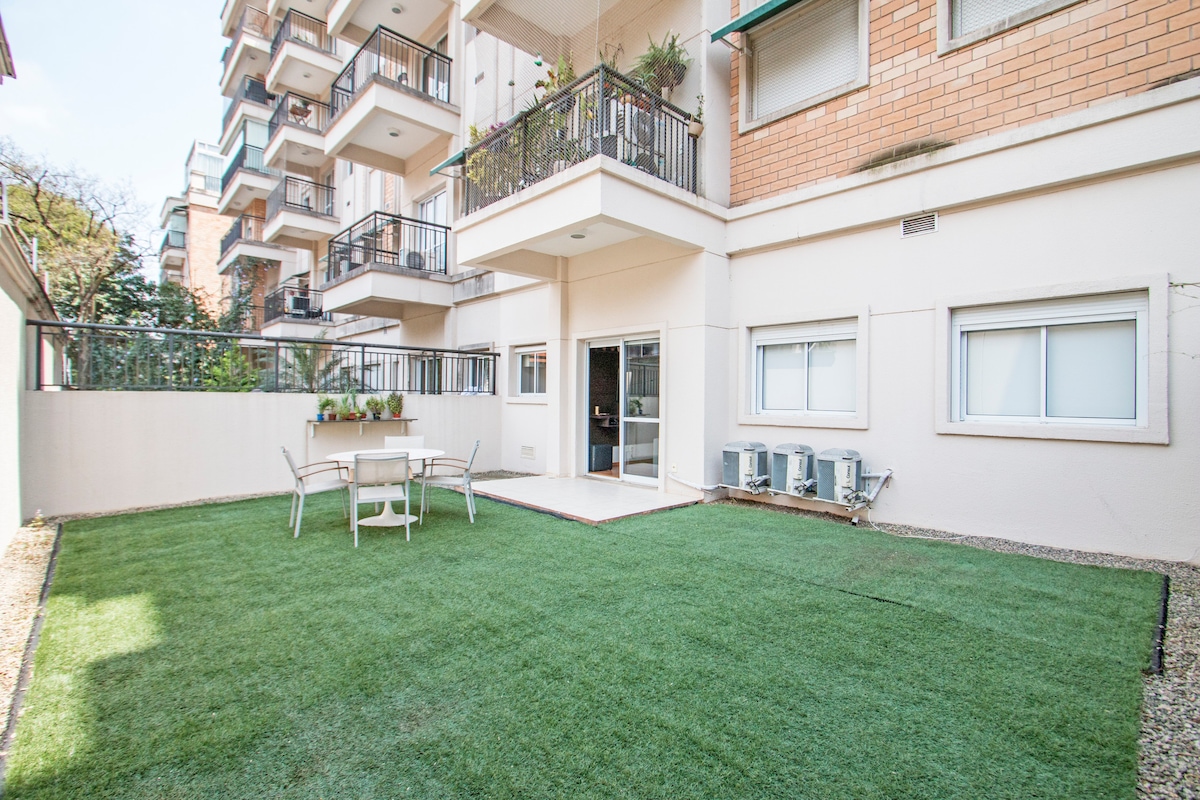 Wonderful 63m apartment with a private 60m garden, recently renovated, with 2 rooms and 2 bathrooms, located at only 120m from Albert Einstein Hospital and 50m from the Morumbis Stadium. Furnished with 1st line mobília, excelent linens and SmarTV