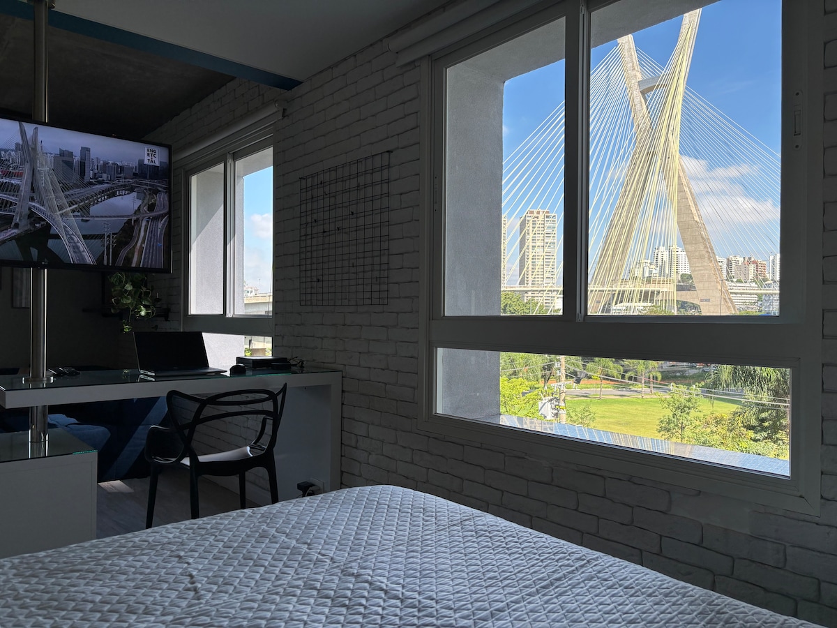 Studio completo e aconchegante onde você irá encontrar tudo para o seu conforto! O studio oferece: • Cama queen e um sofá espaçoso • Ar condicionado e aquecedor • Toalhas e roupas de cama • Utensílios de cozinha O prédio também conta com piscina de borda infinita no 20o andar, academia, sauna, garagem e um mini mercado Aqui tem tudo o que você precisa para trabalhar e/ou relaxar com uma vista maravilhosa de SP