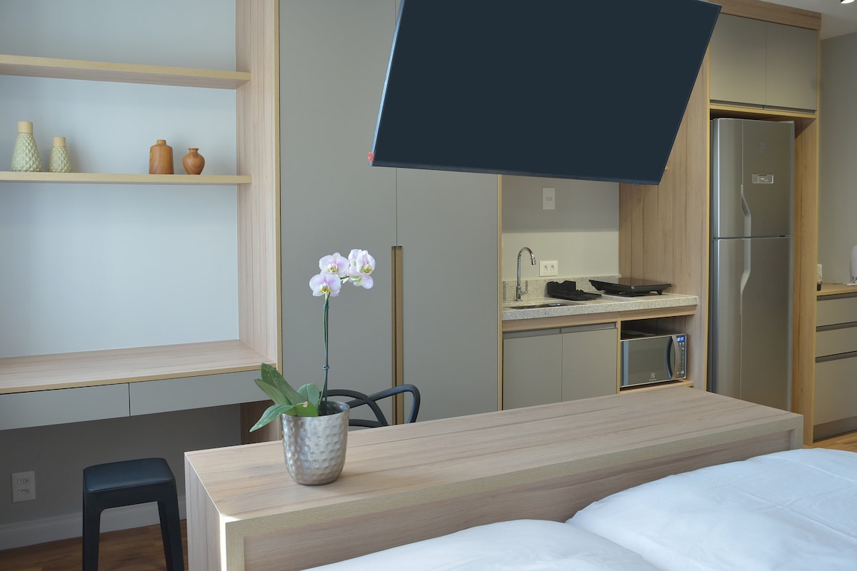 Seja a trabalho ou descanso, este stúdio moderno e acolhedor no Brooklin é o espaço ideal para sua estadia em São Paulo. Apenas 5 minutos a pé da estação Brooklin próximo ao Shopping Morumbi, o estúdio oferece tudo que você precisa para uma estadia tranquila e prática. 5 minutos do Consulado Americano Brooklin e Borba Gato a poucos passos Próximo a supermercados, padarias, farmácias e restaurantes 15 min do Vibra SP/ 15 min do Estádio do Morumbi A região é tranquila, segura e bem conectada.