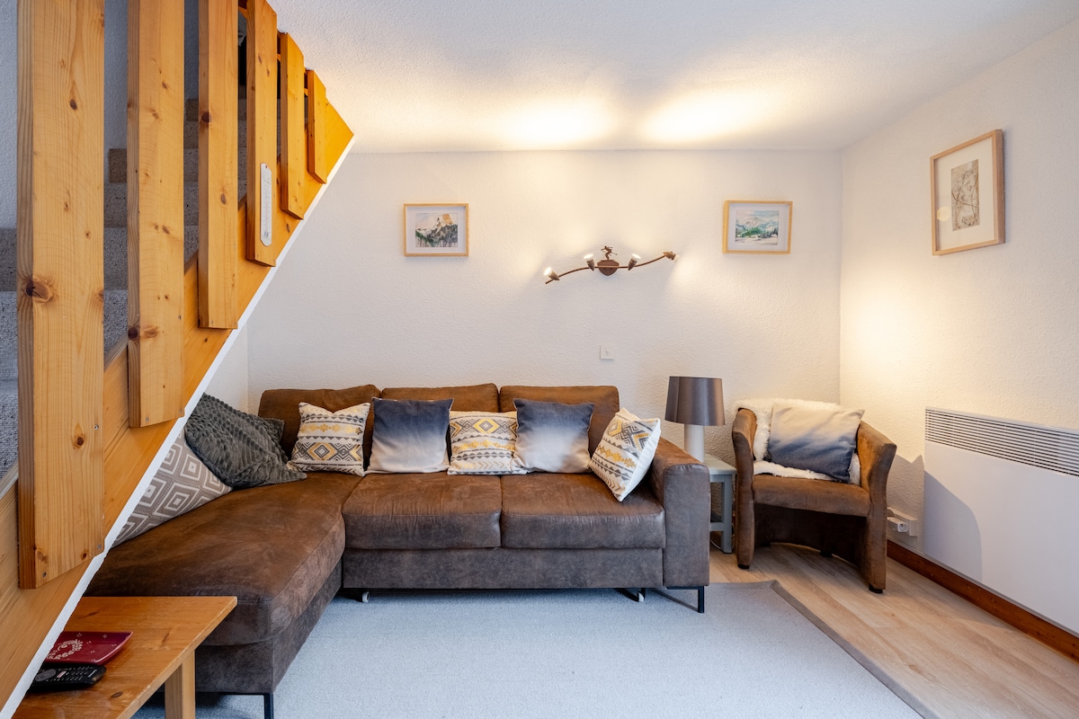 Centrally located! Top floor mezzanine apartment with incredible views of the weekly fireworks displays over the famous Pleney ski slopes. It is perfectly situated 5 minutes walk to the ski lifts (Pleney & Super M) shops & restaurants. The apartment has 2 double beds. One in the bedroom on the mezzanine (2x twins). The other a sofabed in the living area. The space boasts a refurbished shower room and new hob. It has been elegantly designed as well as incorporating is plenty of storage space.