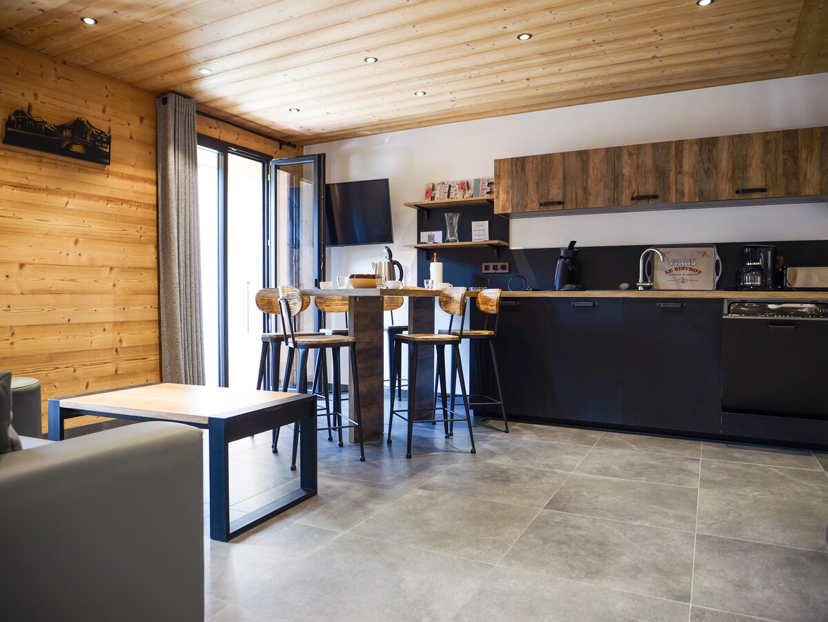 Enjoy a stylish experience at this centrally-located new apartment beside the Pleney Lift. Ski in - Ski out! Perfect location for excellent bars, restos, & shops. Plus private secure underground garage for bikes or a small/medium sized car. Sleeps 6 people: two bedrooms (twin or double), a "Coin Nuit" with adult-size bunkbeds and sliding door. Open plan living area has fully equipped kitchen, dining table and chairs, TV area and wifi. Comfy beds for a perfect night sleep.