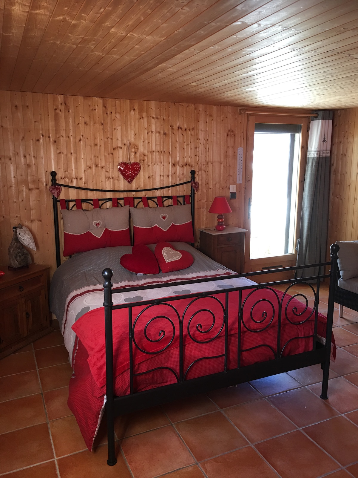 One bedroom with private bathroom in a chalet consisting of 2 double rooms plus a family suite, each with their private bathroom. The chalet is 2 miles from the center of Morzine. Free shuttle during the day. Bedroom with a bed for two, for one with twin beds inquire. In summer BBQ and picnic table in garden. Your host lives in the chalet. The living room is available during the day, becomes private after 6 pm. No cooking facility.