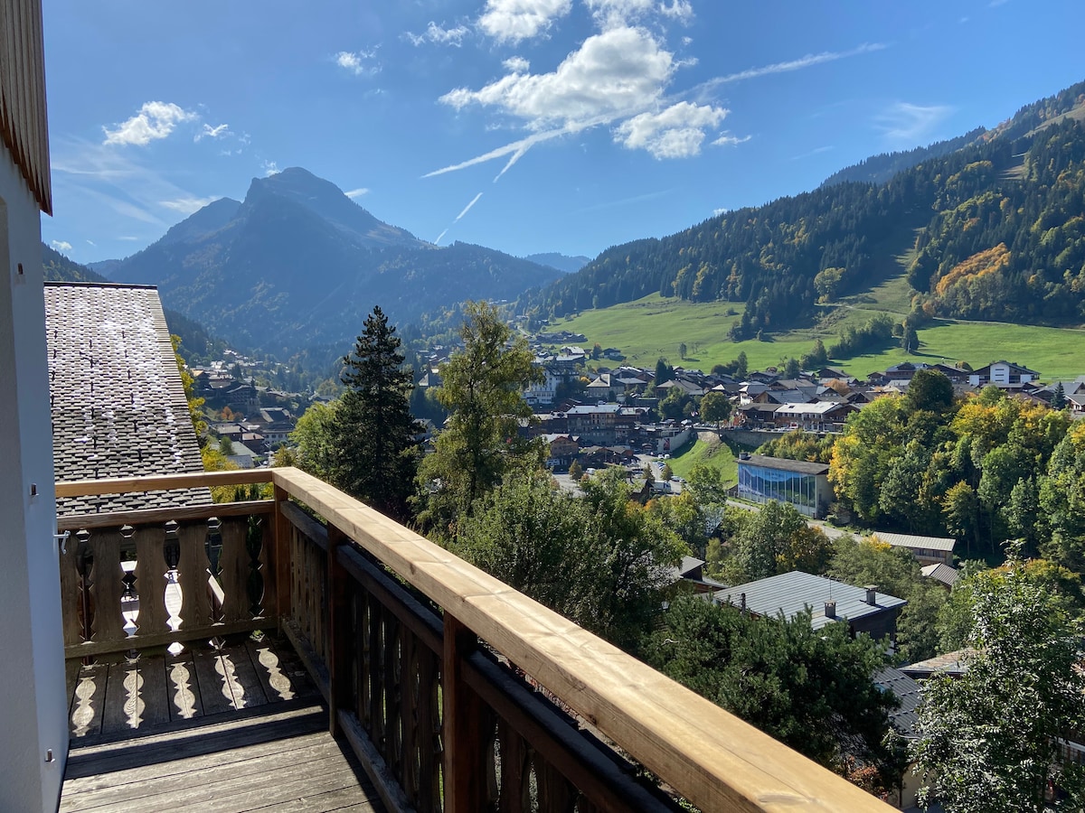 A newly renovated chalet located in a quiet area of Morzine, with a large south facing sunny balcony. The rental accommodation is situated on the top 2 floors of the chalet. The accommodation has 5 bedrooms and 3 shower-rooms. The lounge, dining room and kitchen are open plan, with a log burner and large French windows offering un-interrupted views of the mountains and access to the sunny balcony.