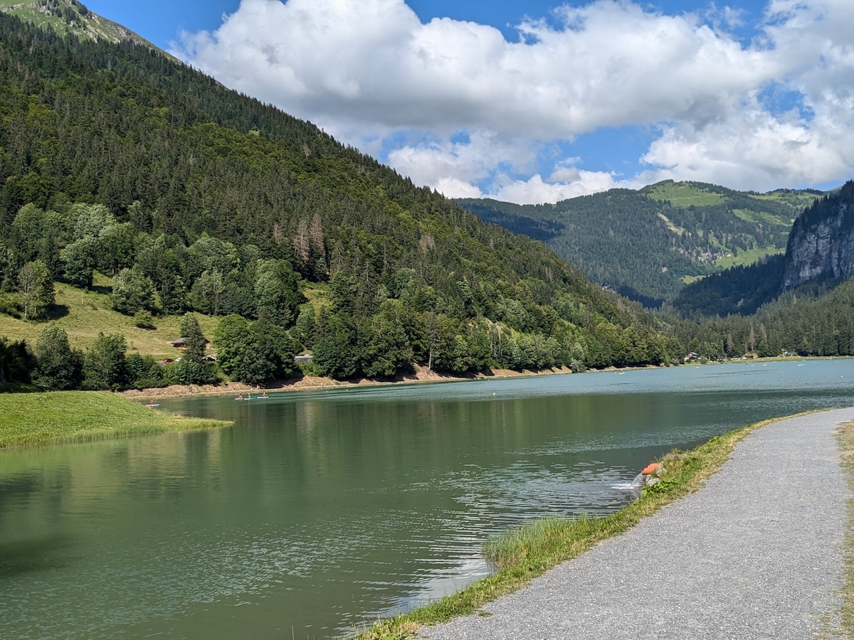 莫尔津(Morzine)附近的宽敞双床公寓(热水浴缸)