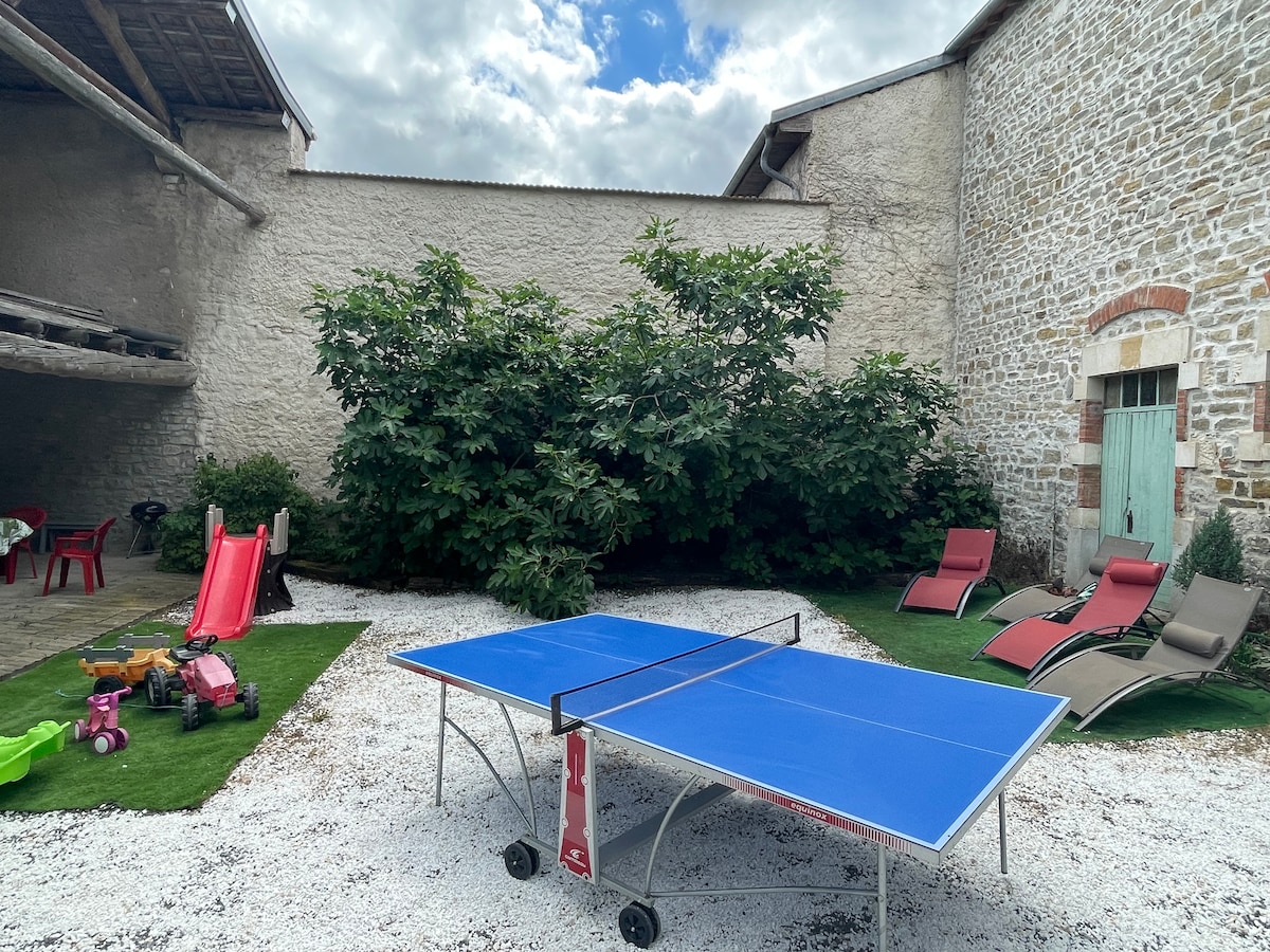 Au cœur d'un écrin de verdure entouré de nos animaux, nous vous proposons notre gite. L'endroit est calme et paisible. Un SPA privatif et un sauna privatif sont a dispositions en illimitée (Moyennant un forfait à partir de 20€ / séjour peu importe le nbr de pers) Le jardin dispose d'une aire de jeux + tyrolienne Il y a une structure gonflable dans une partie indépendante du jardin Des pistes cyclables entourent le gîte, nous pourrons vous prêter gratuitement des vélos électriques + siège enfant