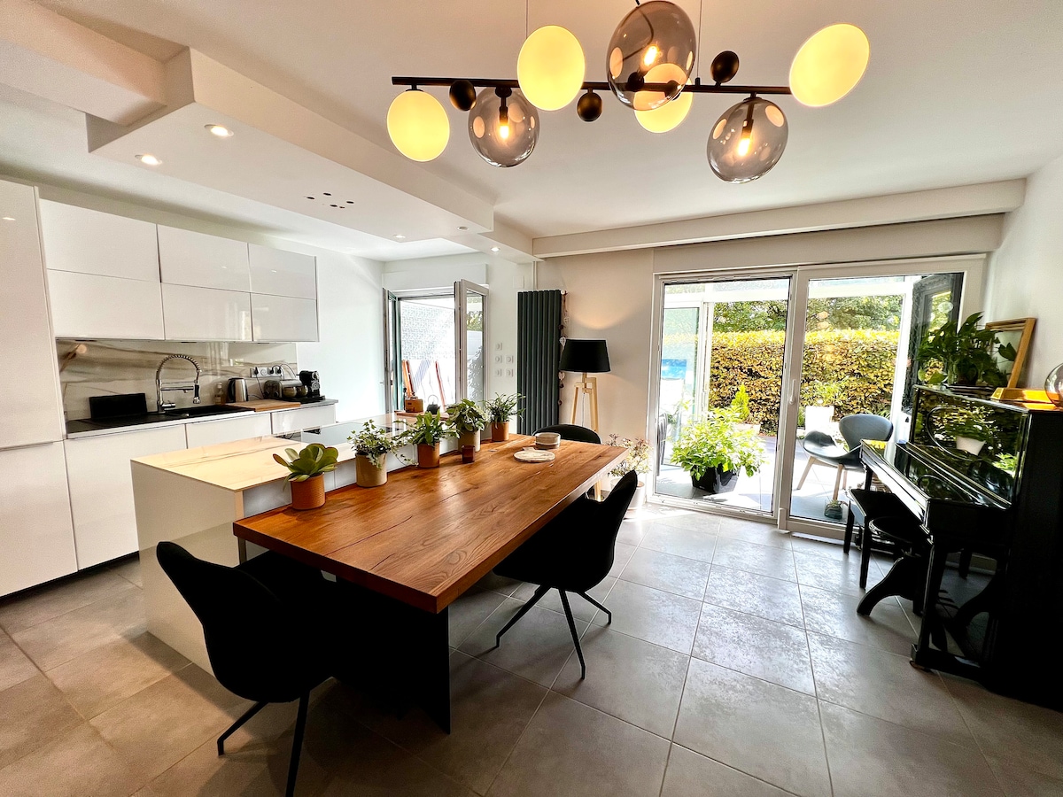 Vidéo de présentation : taper dans la barre de recherche youtube : MxGZUN6Ra2A Appartement duplex refait avec gouts offrant une arrivée directe par le garage. Traversant d'un côté grande rue et rue du Moulin de l'autre son emplacement est unique. Aménagement haut de gamme au 1er un grand salon avec un bureau, télévision, cuisine Bulthaup full équipé et dressing desservant l'entrée. Au rdc,chambre au calme avec SDB, rangements, petit hall desservant les wc et 1 garage avec buanderie.