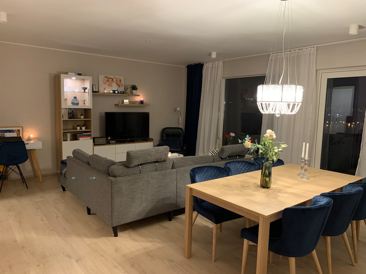 Home away from home – With this self-catering apartment you will find all the comforts of your own house, as well as plenty privacy in quiet surroundings. The apartment is on a quiet street beside the ocean, it's comfortable, clean and cozy, with all essentials. In summer, enjoy the energy-giving midnight sun, watch horses graze in the backyard, and wild geese and goslings strolling around. In winter, witness the majestic Northern Lights from the deck, and listen to the power of the waves.