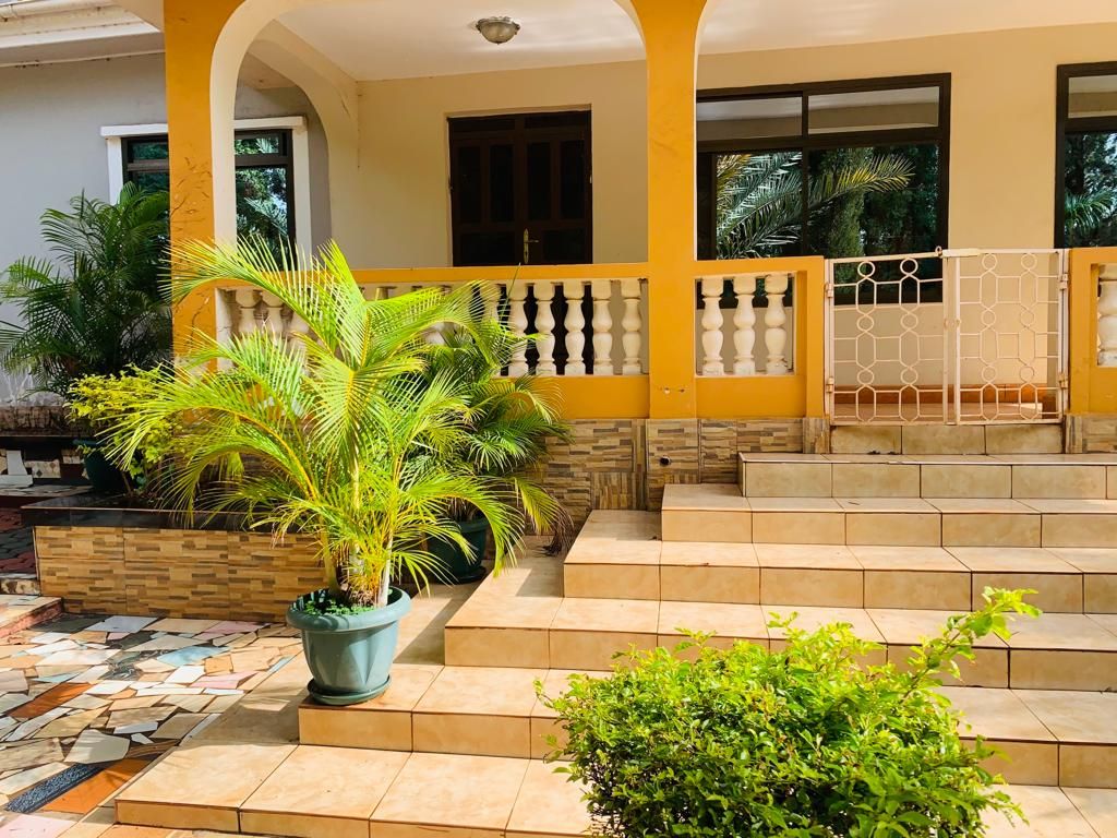 A peace full home in a quiet neighborhood. Secure fenced compound with security guard, free parking in the compound. Covered porch to enjoy the gardens and nice climate. Ground floor: two self contained bedrooms, living room, kitchen with cooking facilities and fridge, store and public bathroom. On first floor two additional rooms and big open space. Easy access to public transport. Nice view on mount Kilimanjaro.