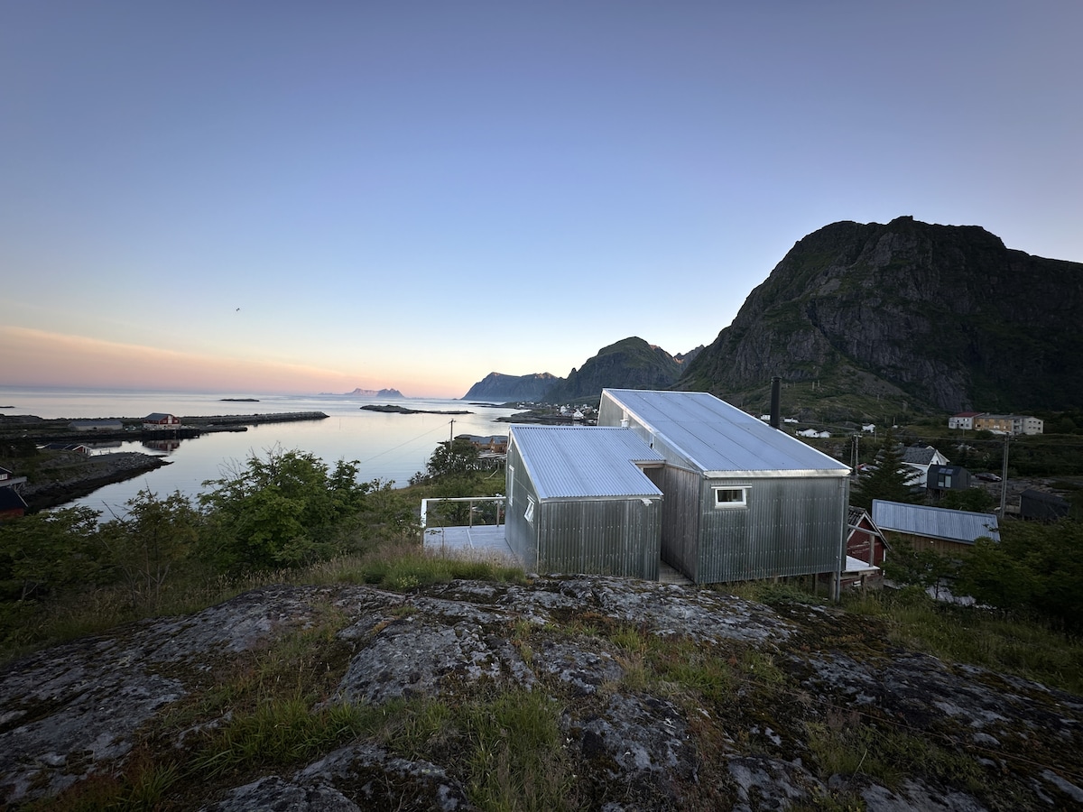 罗弗敦小木屋,独特海景和按摩浴缸
