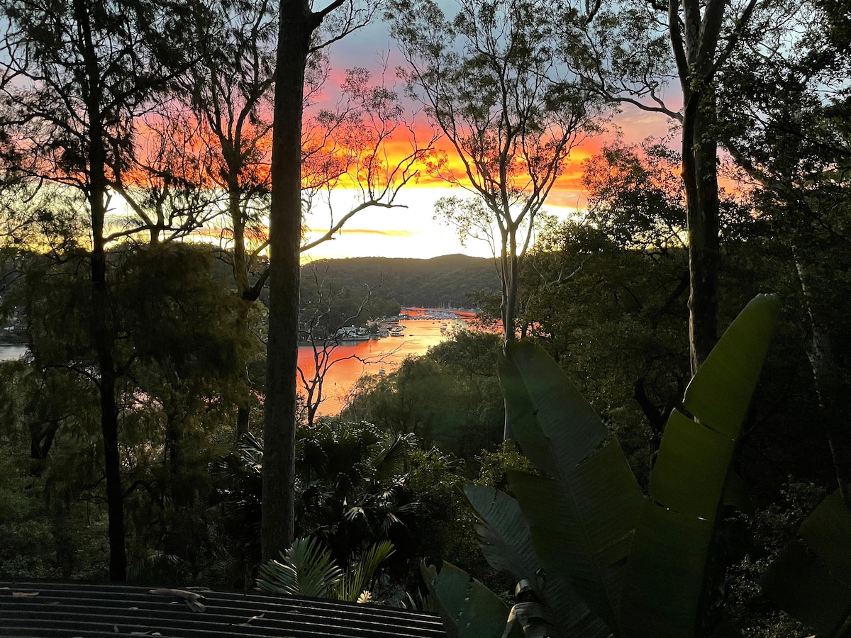 Modern cottage with natural light in quiet, private bush setting, bay windows overlooking fabulous Pittwater, decks, spa, fire pit, outdoor shower. Own entrance, privacy, inclinator access, street parking. Please note the cottage is small but outdoor areas are expansive. 10 min walk to Whale Beach, 30 min walk to Palm Beach, ferry and Avalon. Keoride service, picks up from property and drops you to Avalon, Newport, Mona Vale, Warriewood, same on return. By car everything is 5 - 10 minutes away.
