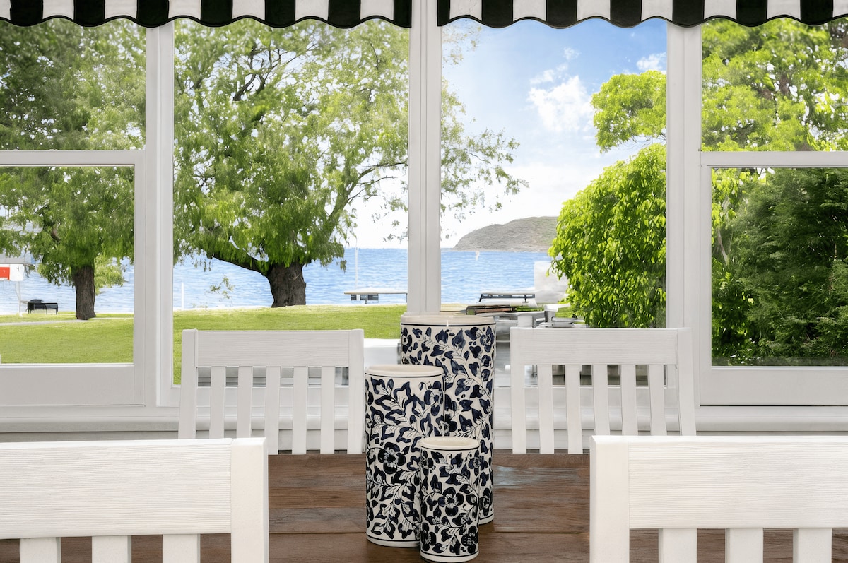 The house is steps away from a beach in Sydney’s Middle Harbor and near Rosherville Reserve, a quiet park with picnic areas. Surrounded by national parks and great walking tracks, Mosman offers beautiful scenery and views of Sydney Harbor.