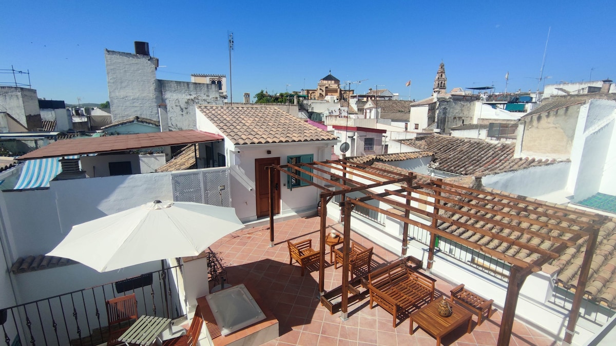 The penthouse is located in the Old Town, only two minutes away from the Mezquita, Alcázar and Sinagogue. It's on the top floor of an ancient palace. From the living room, the main room and the terrace you will be able to enjoy breathtaking views to the Mezquita. In that huge terrace you will be able to have breakfast or dinner while hearing the Cathedral bells, enjoying Córdoba nice weather. Don't miss the sunset while looking at the Mezquita tower. It's perfect for a romantic stay at Córdoba
