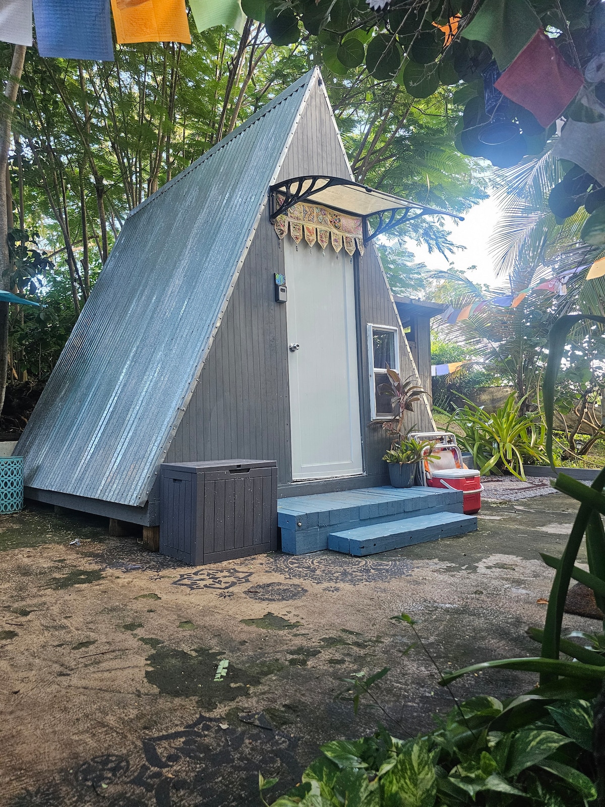 Reconnect with nature at this funky unforgettable escape. This is a stand alone 10x12 A frame structure next to small main house. The restroom and shower are outdoor but private. There is hot water in shower. Large outdoor shower room with rain and regular shower heads. Ac in room is super cold. Queen bed with foam mattress Owner lives full time on property for any needs. The reviews speak for themselves about my property have an unique experience that still feels safe peaceful and comfortable.