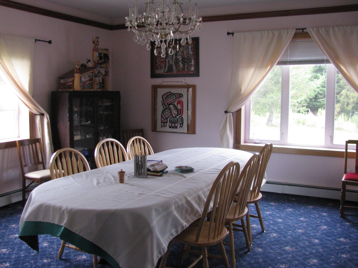 Sadly, no pets or animals allowed due to family allergies. Kick back, relax, & take in the awesome views of Portage Cove, Kelgaya Point. Use the spotting scope to look for bears on the Chilkoot shore line. Recharge in the sauna on the deck for your next Alaskan adventure! A nice base for hiking, heli-sking, trekking, fishing, & any outdoor activities. A short 6 minute walk to downtown, & 4 miles to the ferry. Brew & enjoy coffee or tea in your room with a beautiful view of the Lynn Canal.