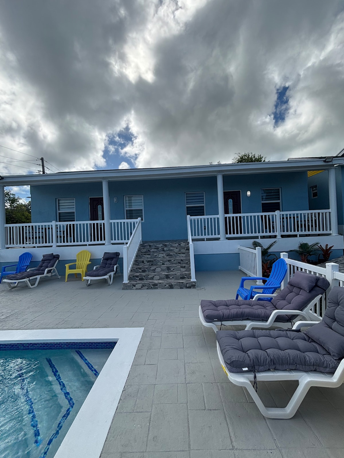 Welcome to Henry Louise and the Parrot, a charming one-bedroom villa nestled in the heart of the island of Exuma. It is centrally located between the airport and Georgetown. The home consists of 4 units 2 upstairs & 2 downstairs, all consist of 1 bedroom, 1 bathroom, living room, dining room, and kitchen. However, only two units are available for rental. It is located on a private sandy beach which is several miles long. This unit is located downstairs with its own private entrance.