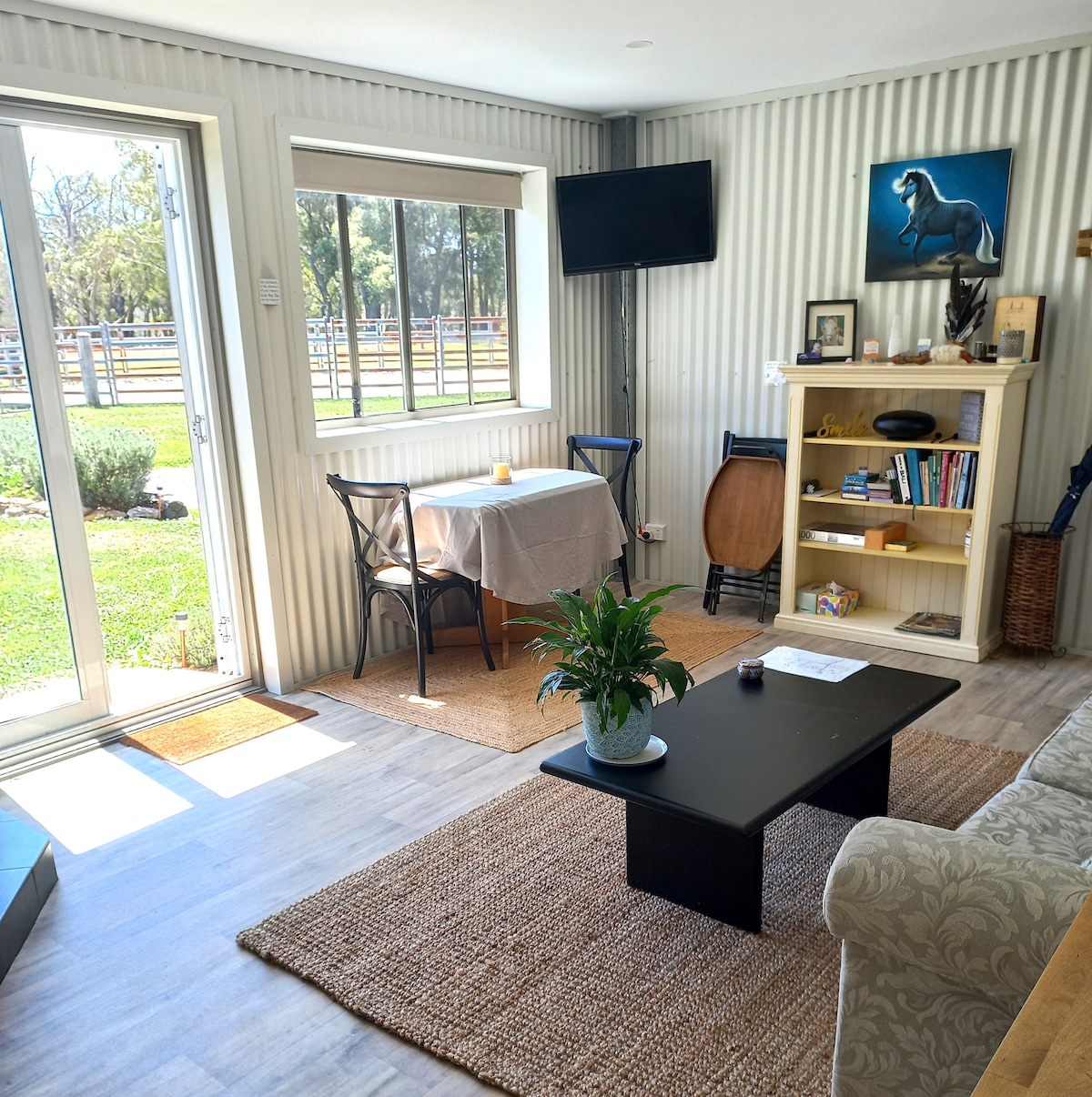 The Stables is a self contained guesthouse situated on our family property in beautiful Burradoo. Suited to either a family of up to four or two couples, the guesthouse is fully equipped for a weekend away in the countryside. Located midway between Bowral and Moss Vale, the Stables is set on 10 picturesque acres and surrounded by unspoilt farmland, with views to Oxley Hill and surrounds - yet Bowral’s boutiques, homewares stores, restaurants and cafes are just 5 minutes away.