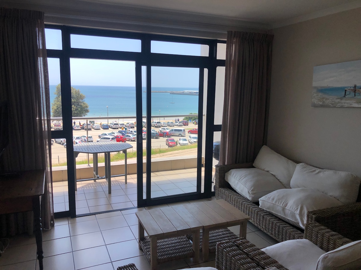 This is a beautiful modern upmarket 2 bedroom, 2 bathroom, beach front apartment with a spectacular 180 degrees view over the ocean at Mossel Bay from the lounge and main bedroom. Apartment has direct access to the beach. Beautifully furnished. Secure parking within the complex. Swimming cool in complex. Fully equipped kitchen with coffee maker, stove and hob, dish washer, washing mashine, fridge and indoor gas braai. Next to the Dias Hotel. Uncapped fibre.