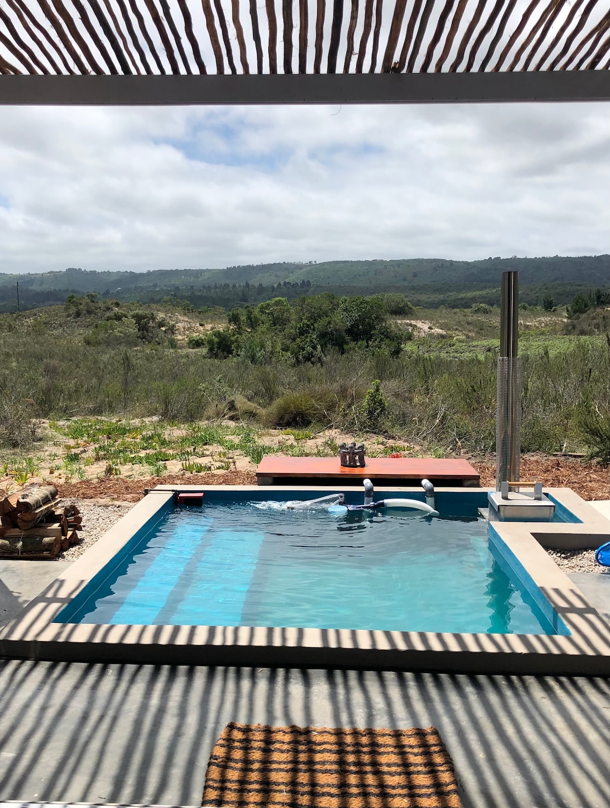 The Tuffet is an elegant studio ideal for couples seeking a romantic oasis in the beauty of the Garden Route. With a private wood-fired hot tub overlooking idyllic views of the lake and mountains, this stylish, secluded space has all the simple luxuries needed to rest in nature. Pet-friendly and off the grid with air con, Wi-Fi, TV, Amazon Prime and all the essentials. Relax and reconnect with each other. Enjoy our farm trails, shared pool with stunning views, and the neighbouring national park.
