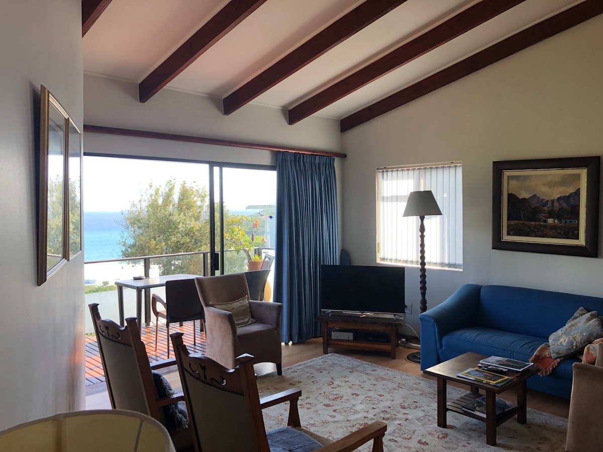 Spacious, peaceful self-catering apartment with views of sea & forest. Unique hillside setting, only 10 minutes walk to the beach (1 km) which is safe for surfing and bathing. Great for work from home. You are surrounded by sounds of sea & forest birds. Garden borders on unspoiled fynbos valley. This is an upstairs FAMILY Apartment.Maximum of 6-8 people. it has two small balconies, washing machine & dishwasher. UPS for Smart TV , DSTV and sports channels, WiFi, shared garden and forest walks.