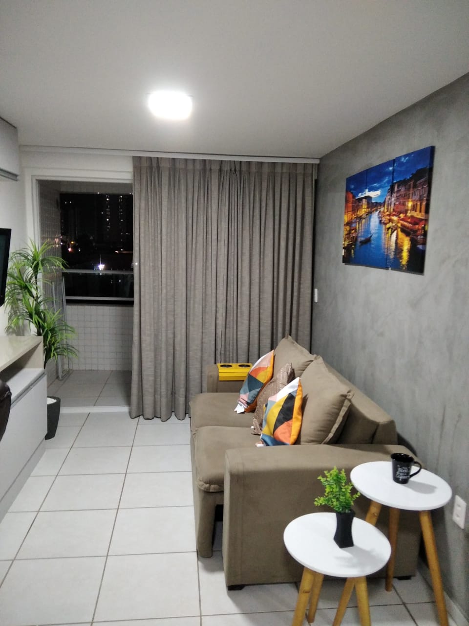 Apartamento confortável, mobiliado e equipado em bairro nobre de Mossoró próximo ao principal shopping da cidade, restaurantes, farmácias, universidades e postos de combustível. O espaço dispõe de 1 suíte climatizada com smart TV e cama de casal, 1 sala com ventilador, sofá-cama e TV, cozinha completa de utensílios e gelágua. O prédio dispõe de portaria 24 horas, estacionamento, piscina, academia, restaurante e sauna. Anfitrião: @raul2n