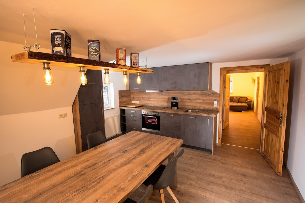 Willkommen in unserer atemberaubenden Bergvilla! Entdecken Sie die Ruhe des Osterzgebirges und erleben Sie unvergessliche Ferien in der Natur: Das Chalet bietet ein außergewöhnliches Layout-Konzept, 3 Doppelschlafzimmer, eine gut ausgestattete Küche und ein geräumiges Wohnzimmer. Genießen Sie die herrliche Aussicht von der Terrasse aus. Die Villa ist mit modernen Möbeln und Einrichtungen ausgestattet, darunter Wifi, Satelliten-TV, Apple TV-Technologie und ein Sound-System.