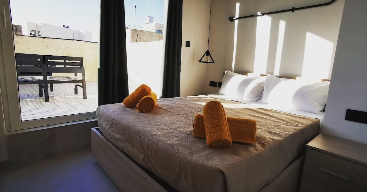 The Duplex Penthouse (100m2) is located in a quiet street off Balluta Bay St Julians, reachable on foot in only 5mins. Enjoy a lovely terrace with Valletta views. We live across the road so we know the area well - there are lots of great restaurants and a lovely seaside walk. You'll live like a local, be close to the gorgeous blue sea and nightlife. Bus stop is 1min away. You’ll love the natural light, air con, free sparkling wine, fruit, nibbles, tea&coffee and more. Great for families of 4+1.