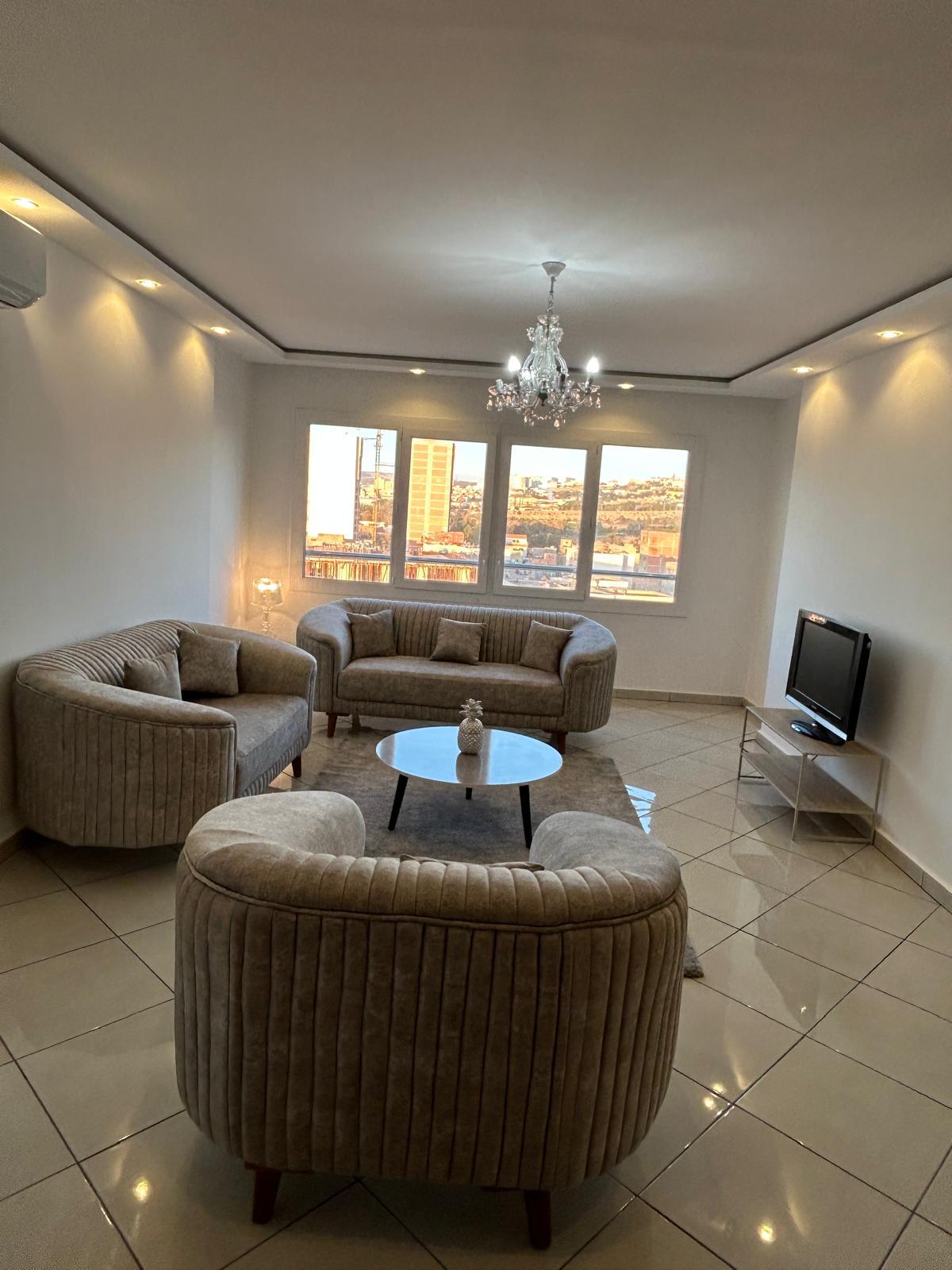 Magnifique appartement T5 surplombant la baie de Mostaganem , élégant ,spacieux, parfait pour passer un séjour exceptionnel en famille. Résidence sécurisée 24/24 dispose d'un parking surveillé, piscine rooftop . 🌴Piscine sur le toit , une vue et un couché de soleil ☀️exceptionnel🤩 Chaque jour, profitez d’un créneau privé d’environ 3h rooftop UNIQUEMENT pour vous et votre famille. Détente, intimité et une vue panoramique sur Mostaganem et la mer… Un luxe rare pour un séjour inoubliable🏖️