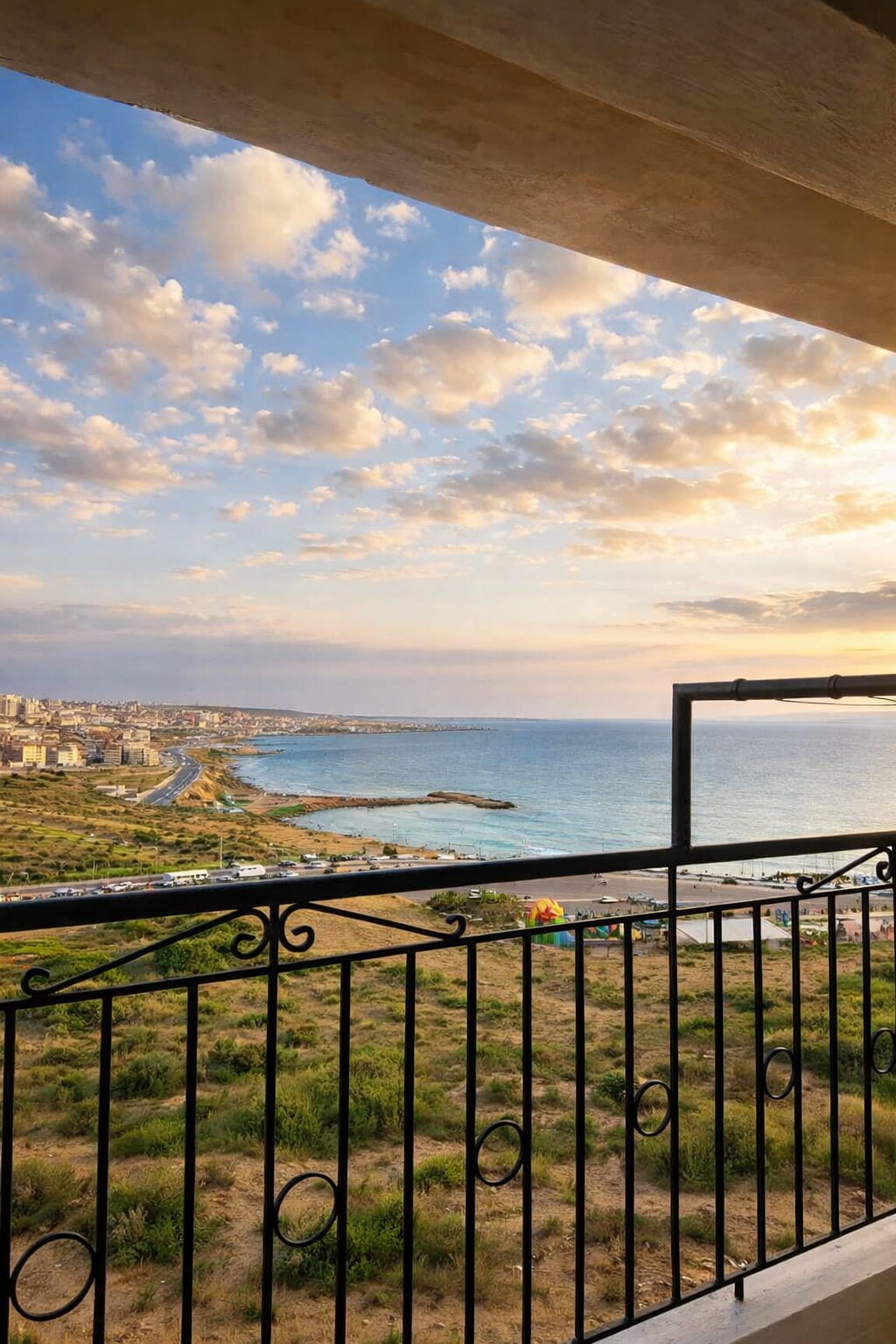 Charmant T3, vue panoramique sur la Méditerranée, à 2mn à pied de la plage, entièrement équipé, climatisé, dans une très belle résidence sécurisée sans vis-à-vis, avec parking surveillé 7/7 Idéal pour un séjour en famille ou à 2 cet appartement est situé pile dans la zone touristique des Sablettes et sa longue plage de sable fin. A la fois les pieds dans l'eau et loin du bruit, vous profiterez du calme, de la pêche et des joies de la mer. Situé à 5 min de Mostaganem Ville et à 10min de Mostaland