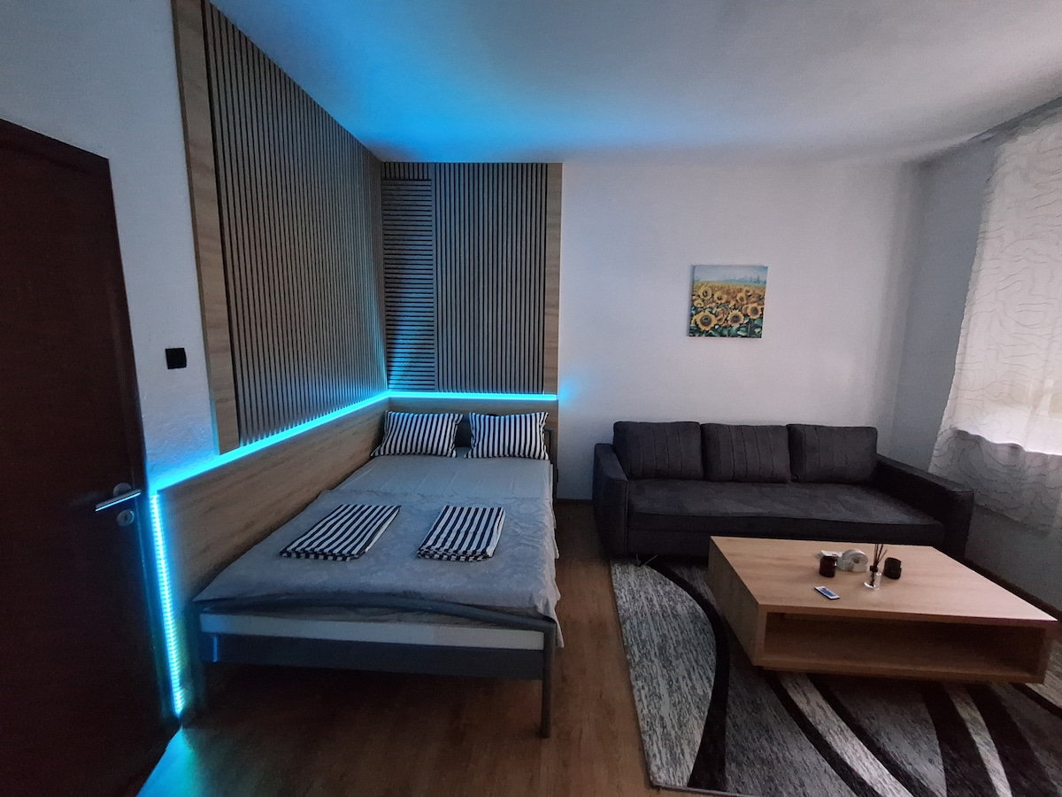 Nanda Apartment is located in the city center, right next to Mepas Mall (the biggest shopping center in Mostar). Two main bus stations are 1km away. In the same building, you can find fancy bars, restaurants, supermarkets, etc. For those with children, there is a beautiful city park about 10 minutes walking distance. Our spacious apartment includes a bedroom, a seating area with a sofa, a fully equipped kitchen, and a bathroom with a shower. Easy access to the elevator, no stairs.