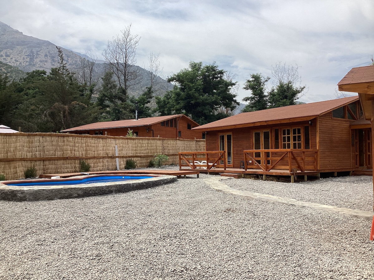 Lugar ideal para relajarse con la energía de la cordillera. Cabaña de atractivo diseño natural, situada a los pies del cerro Lican y a orilla del estero San José, situada a 10 min. del pueblo San José de Maipo. Posee una terraza bajo un parrón y otro lugar con parrilla. Piscina con agua de estero (no transparente). Un dormitorio matrimonial, un dormitorio con escritorio, un baño y un altillo con un futón. Ideal para parejas que quieran vivir el silencio y la tranquilidad en la naturaleza.