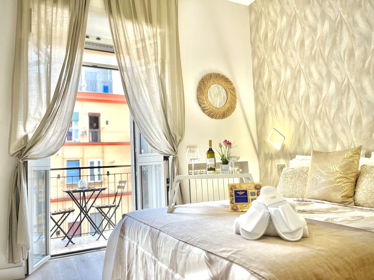 Enjoy a unique experience in the lovely Suite with a panoramic terrace overlooking Vesuvius+breakfast and Wine as a welcome gift.With this accommodation in the center of Naples your family will be close to everything!The strategic position in a safe area makes Mazzocchi the ideal choice for those visiting the city.The house is cozy,bright with4beds,super equipped kitchen,in a historic building with elevator.FastWiFi,Free parking or H24secure parking.Transfer/tour service.Dedicated assistance24/7