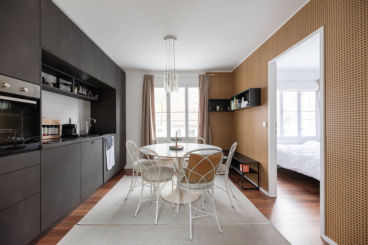 Enjoy beautiful days in new central stylish accommodation about 41m²! 2 minutes walk from the train station and 5 minutes to the FH, living room/bedroom approx. 22m², kitchen approx. 10m², WC+shower+washroom approx. 5m², anteroom-cloakroom approx. 4m², living room ventilation, underfloor heating! basement! Garden/joint use! Code Systems. For children-ki bed, high chair, toys. Gladly contactless! There is the possibility to do yoga in the house for an extra charge! beautiful recreation park 1min!