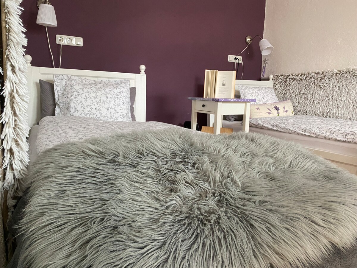 Eintauchen in die Natur, Kraft tanken und Ruhe genießen. Ihre Wohnung ist über eine Aussentreppe erreichbar und befindet sich in einer ruhiger Lage, ohne Trubel und Lärm. Ausgangspunkt für viele Wanderwege und Ausflugsziele, direkt am Weg zum Lugauer. Für ihre Kinder ist genug Platz um zu Spielen , Tiere streicheln und beobachten. Zum Entspannen haben sie am Waldesrand Sitzgelegenheiten und Platz zum Grillen.