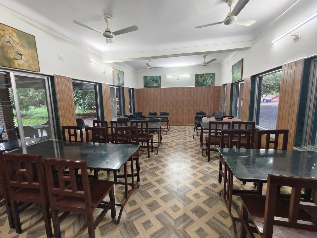 Set on our family farm House Near the Bhojde Village, The Wooden House is the perfect place to relax and recharge, surrounded by nature. Beautiful views over fields and woodland, with an abundance of wildlife on the doorstep, with private parking. Made entirely of wood, even its interiors have beautiful wooden furnishings. There's a patio where you can chill with Family, a Swimming pool where you enjoy in the view of Hills in the background, the surrounding trees.