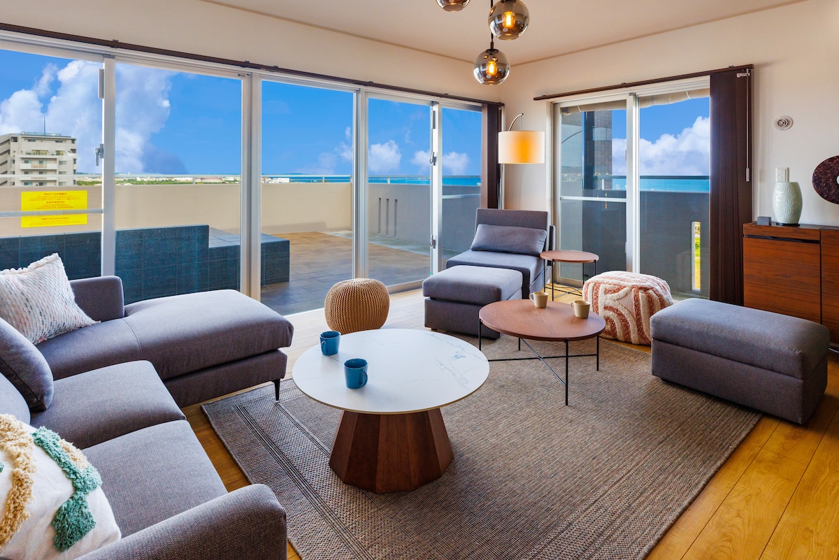 Luxury apartment ocean view! - 2 minutes walk to natural private beach! If there are more than 4 people, please contact us separately! ★ A luxurious ocean view apartment. ★ 5 minutes walk to diving spots (Blue Cave and Maeda Misasaki) ★ There is natural private beach in front of apartment. (Surfing, Snorkeling available) ★ There is no additional charge for children under 3 years old. ★ Free parking space
