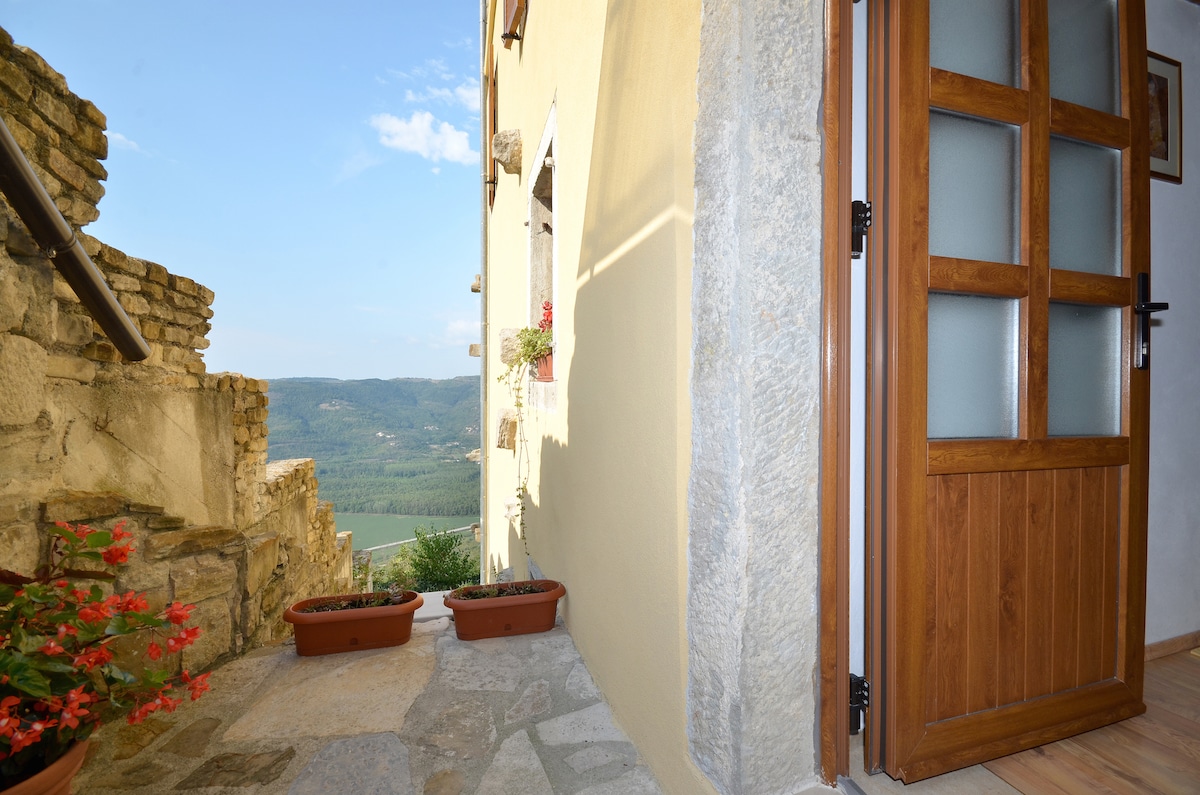 Charming studio apartment hidden in a steep, winding and picturesque cobblestone road in the peaceful part of the medieval city of Motovun. As a part of a eclectically refurbished 18th century house built on top of the second defence wall with a breathtaking view of the tranquil surroundings -vineyards and olive yards spread over the hills scattered with sleepy little villages, and overlooking rooftops of the houses in the neighborhood…