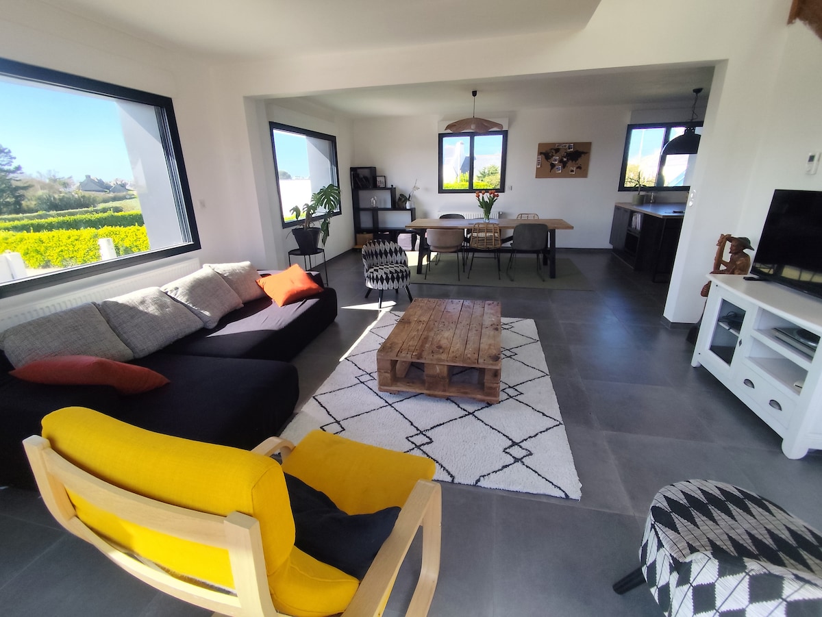 A carefully renovated house, flooded with light, facing south, designed to comfortably accommodate up to 6 people. New hotel-quality bedding, a modern fully equipped kitchen, terrace, and large garden. The courtyard is enclosed with a gate. Secure shed for 6 bikes. Ideal for cyclists and hikers. Just steps away from the Nantes-Brest Canal and close to the center of Carhaix. You'll also be only a few meters from the famous Vélodyssée route.