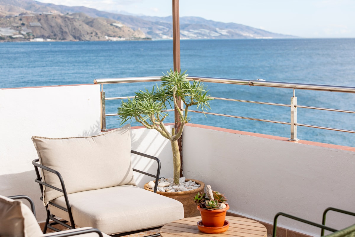 Enjoy an exclusive stay at the Cliff House, featured on Netflix's "The World's Most Extraordinary Homes." Located on the Granada coast, it combines unique design, Mediterranean views, and an ideal year-round climate. It boasts a spacious 150 m² living room with an integrated kitchen and panoramic views. Just 5 km from the beach and close to the Sierra Nevada mountains, it's the perfect place to enjoy the combination of sea, nature, and mountains.