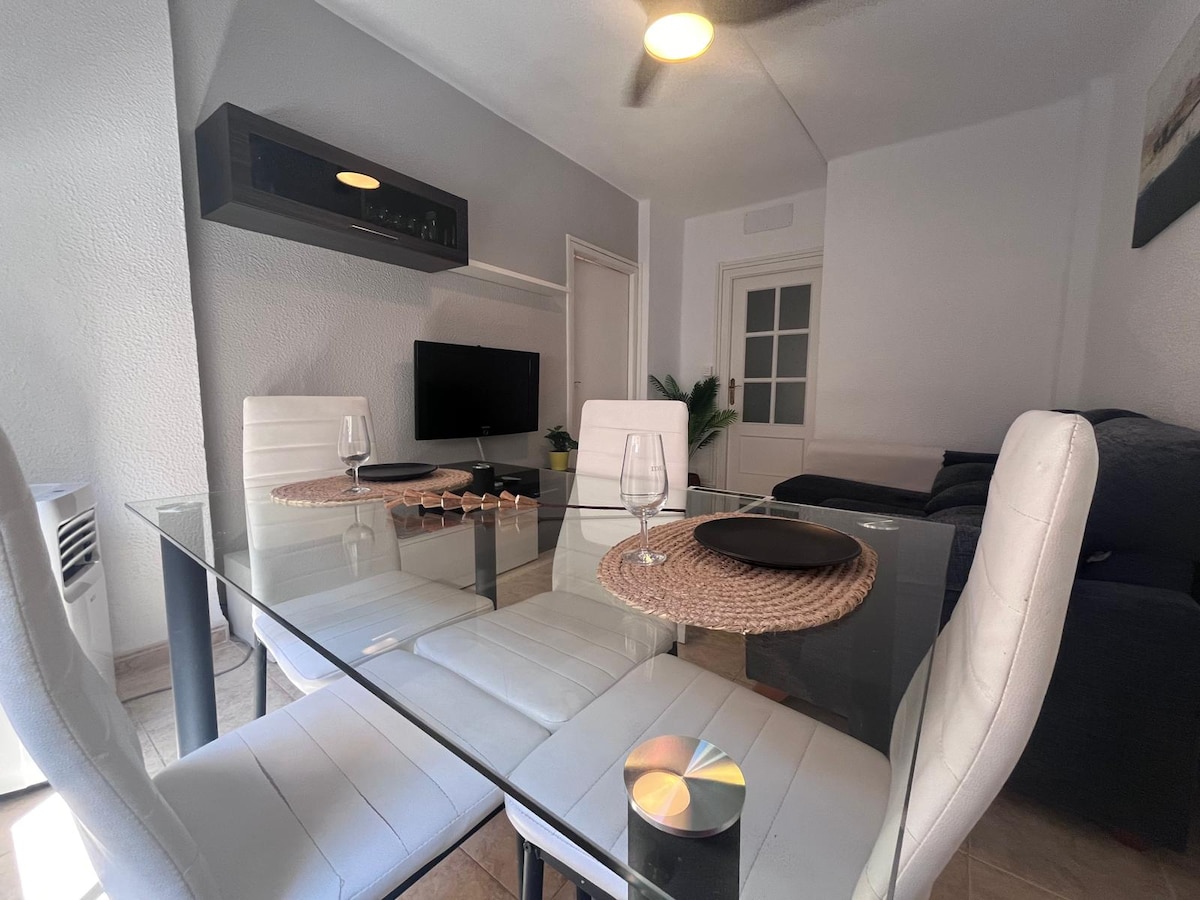 Enjoy a unique stay in this charming apartment in the center of Motril, equipped with all the amenities you need. Claudia's house features a spacious and bright living room, a fully equipped kitchen with a patio and dining area, two bedrooms with double beds, a full bathroom with a shower, and an additional toilet. Its location is unbeatable, just a 2-minute walk from the center of Motril and 10 minutes from Granada Beach. Perfect for exploring the Costa Tropical!