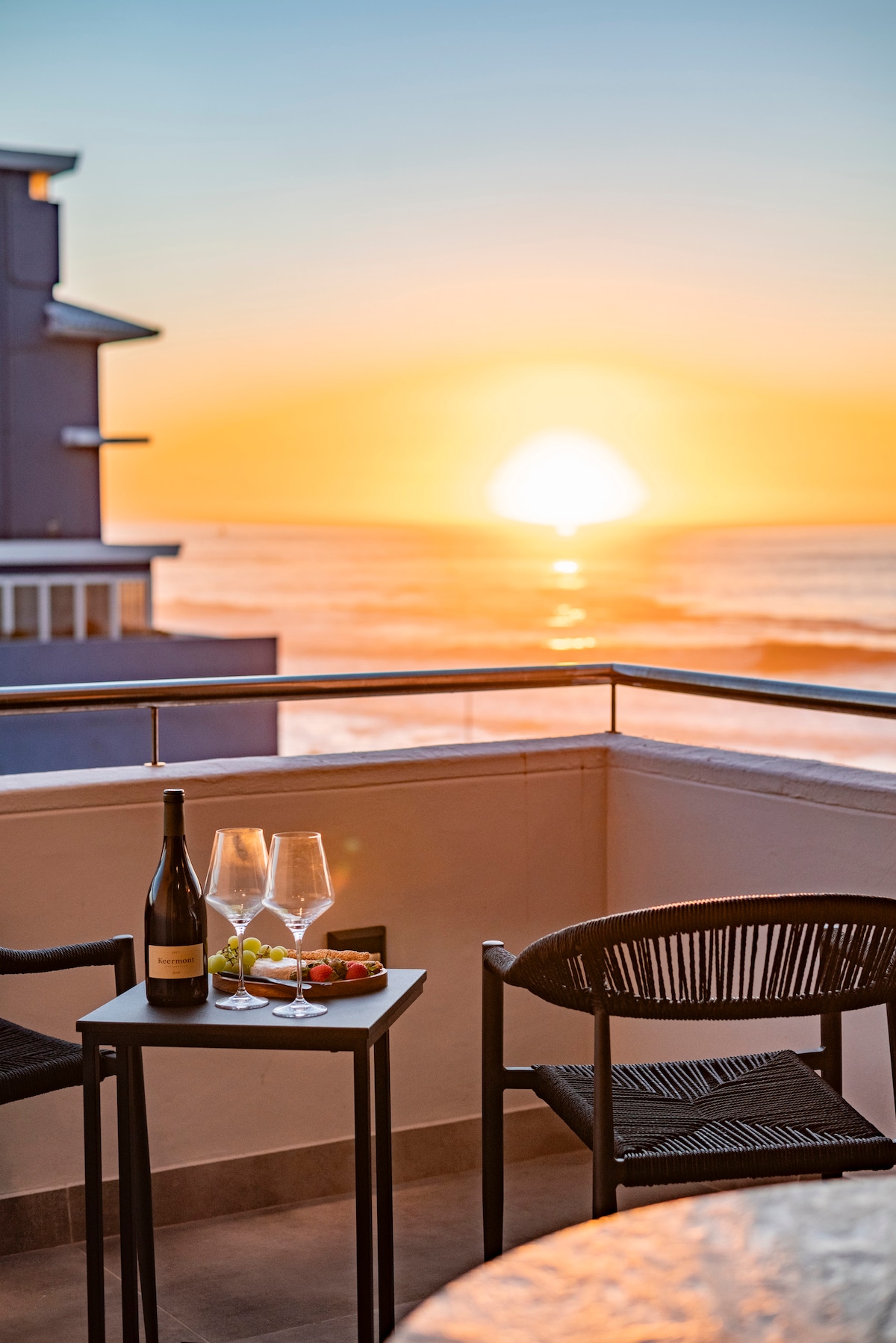 在海浪声中醒来。现代、宽敞、海景