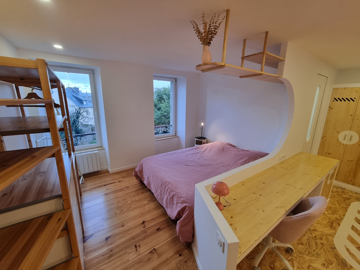 Envie d'évasion, de surprise et de plaisir ? Accordez-vous une parenthèse sur votre quotidien et venez profiter d'un moment unique le temps d'un week end. Bienvenue dans ce magnifique duplex chic et raffinée doté d'une chambre cocooning avec sa baignoire, vidéo-projecteur et cheminée. Le duplex est situé rue Jean Jaurès, il est idéalement placé. A peine sortie de l'immeuble une multitude de restaurants et de magasins s'offre à vous. À très vite dans le Cocon Brestois.