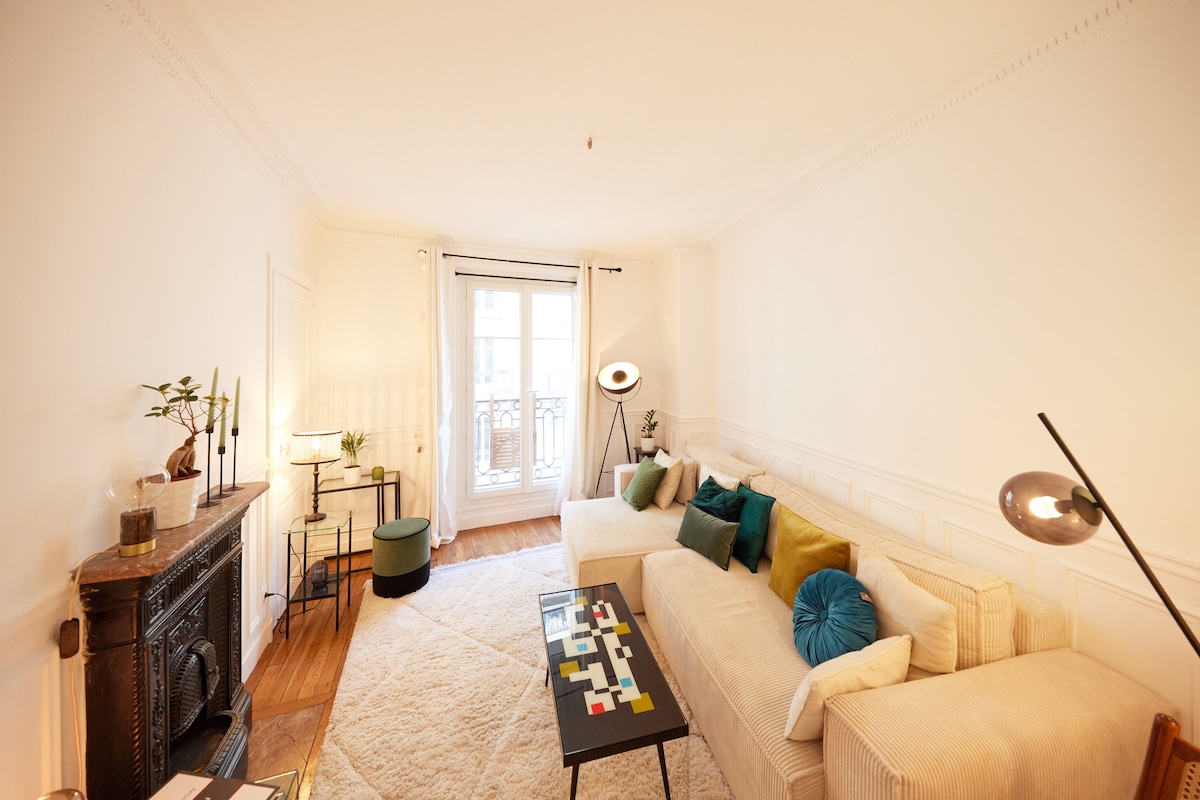 Bienvenue dans notre pied-à-terre haussmannien, à deux pas du Sacré-Cœur et Montmartre, rue calme donnant sur l’avenue Trudaine. Immeuble de 1871, 4e étage sans ascenseur. Cet appartement lumineux allie élégance classique et confort moderne : parquet en point de Hongrie, moulures, cheminée décorative et séjour spacieux. Une chambre calme sur cour, cuisine ouverte équipée, salle de bain fonctionnelle Quartier vivant, proche cafés, boutiques et métro Anvers (2 min), Gare du Nord (10 min).