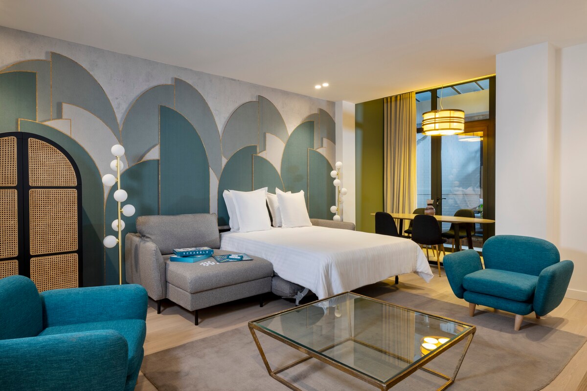 Fall under the spell of our Deluxe Ground Floor Studio, designed for two and featuring a spacious, elegant, and functional living area. Its 25m² of optimized space includes a fully equipped kitchen, premium bedding, and a bathroom with a shower. Enjoy 4-star hotel services available 24/7, including access to the lobby, luggage storage, and à la carte services.