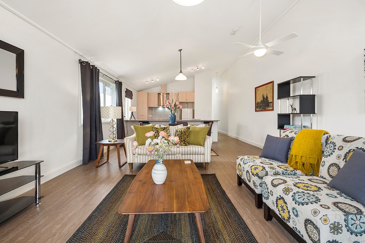 Explore Castlemaine and surrounds from The Paddock Ecovillage, perfectly situated on the edge of the bush and the edge of town. Our guest suite very comfortably sleeps four and includes a lounge room, a well-equipped kitchenette and access to a communal full kitchen. Views extend across the ecovillage property to the surrounding bush. The centre of town, including the Castlemaine train station and a fantastic selection of cafes, restaurants and cultural attractions, is just a 15-minute walk.
