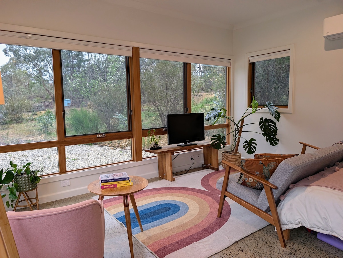 Welcome to 52Views, a private retreat nestled on the hill, with stunning views over the historical town and lush treetops of Castlemaine. Enjoy the expansive panorama from the comfort of your self-contained space and garden, or venture out to explore the many offerings of the vibrant Goldfields region. The heart of the town is just a stone’s throw away and the beautiful Castlemaine Botanical Gardens and exuberant Mill Markets are also within walking distance. 52Views is pet friendly.
