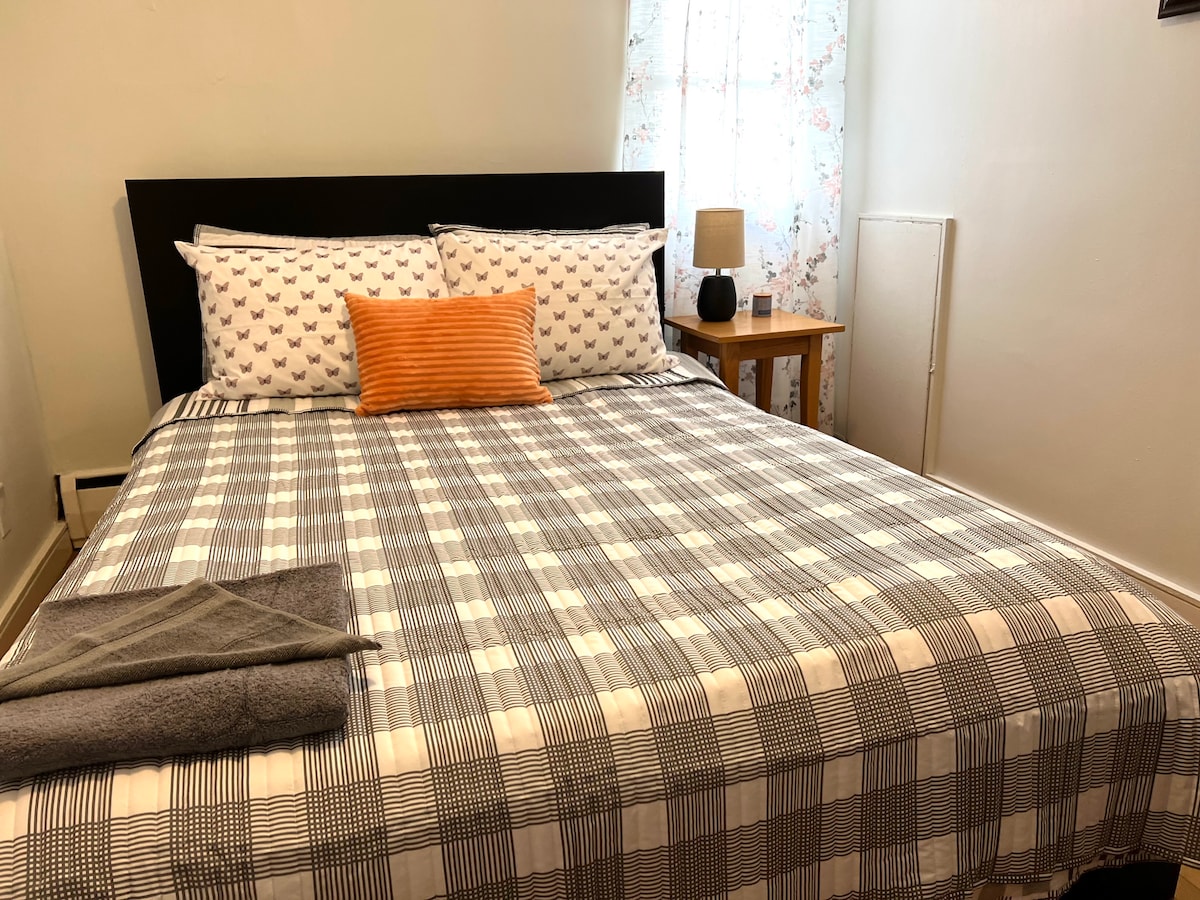 Clean and comfortable. 2 bedrooms, full bath and kitchen, and free parking spot. 1st floor of 2-family. Owner lives upstairs. Door to the guest's residence is through a rear hallway. Hallway is occasionally shared with owner. 1 block to 15 min bus ride to Harvard Sq. (directions below) Easy access to Boston but in green and quiet neighborhood. There's no living room but there is comfortable sitting area in one of the bedrooms. Work space can also be arranged. Please let us know what you need.